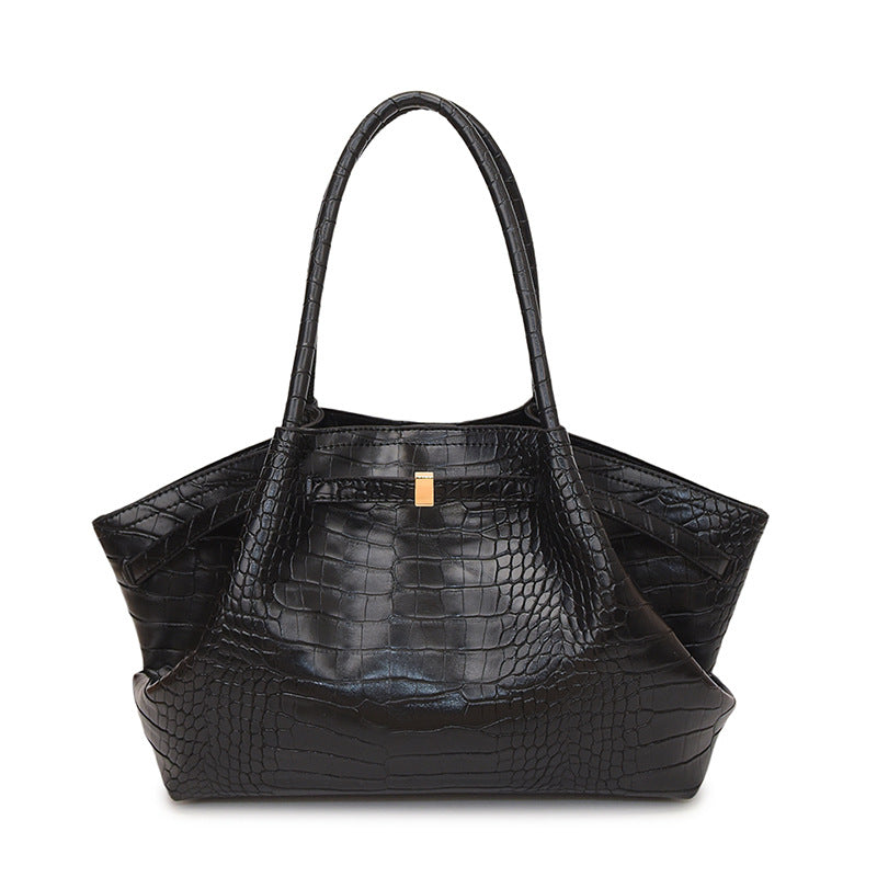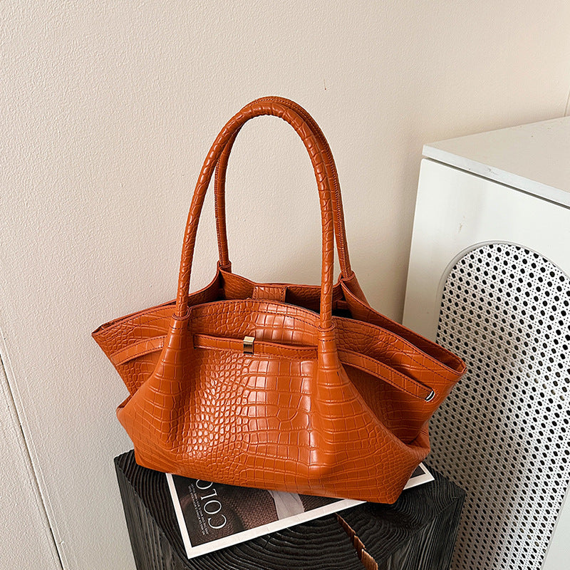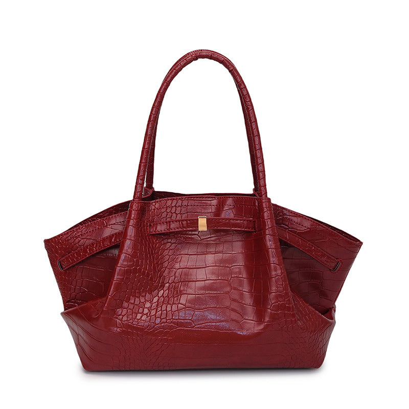 With a large-capacity design, she can fit her laptop, makeup kit, or festive shopping finds with ease. The crocodile texture adds a high-end touch, while the armpit-style strap makes it trendy and comfortable to carry.