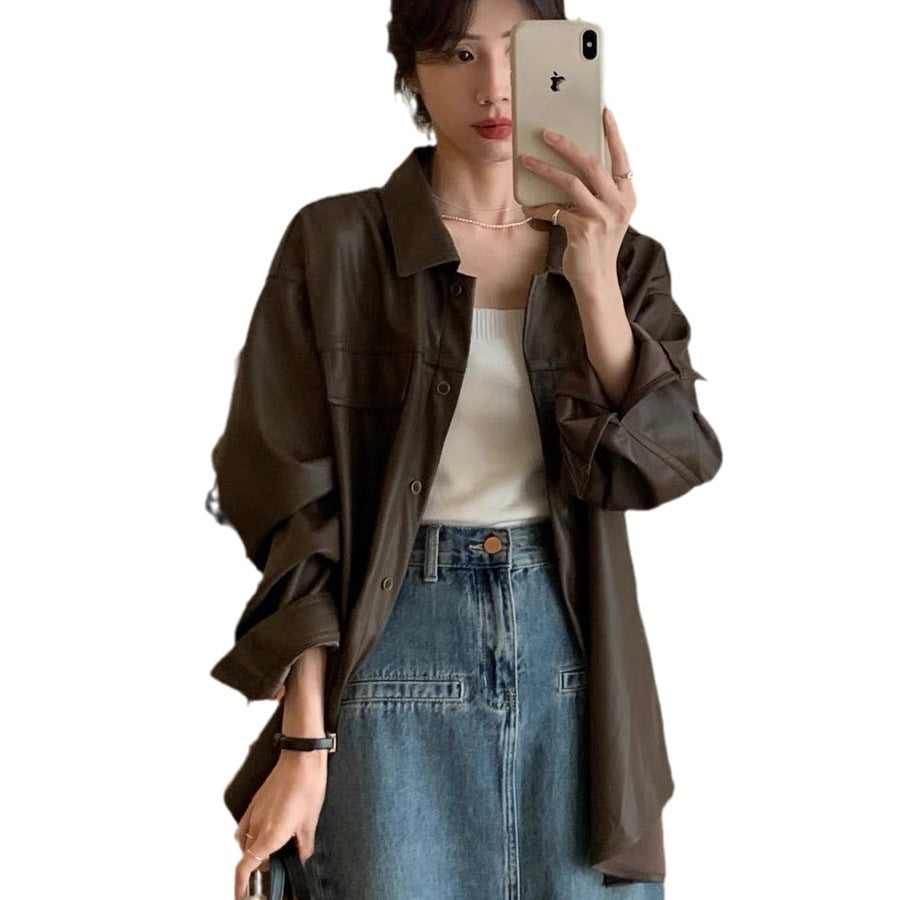 Made from premium PU leather, it offers a soft, polished finish that’s easy to maintain. The mid-length design provides excellent coverage while the loose retro fit ensures effortless layering over sweaters or t-shirts 🌸. Lined with soft fabric, it keeps you comfortable and warm during breezy days, while the coffee brown color adds a sophisticated touch to any outfit — casual or semi-formal.