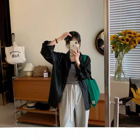 Embrace casual elegance with our Lazy Style Coffee PU Leather Mid-Length Jacket for Women! ☕🖤 Perfect for spring and fall, this retro-inspired loose jacket combines timeless style with cozy comfort, making it an essential piece for every Nepali woman’s wardrobe.