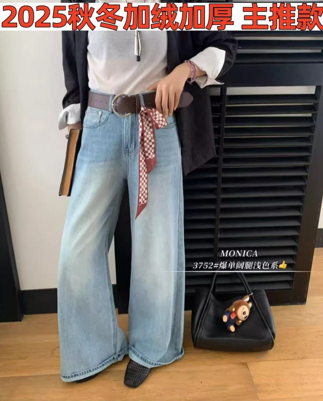 Light Blue Warm High-Waist Wide-Leg Jeans