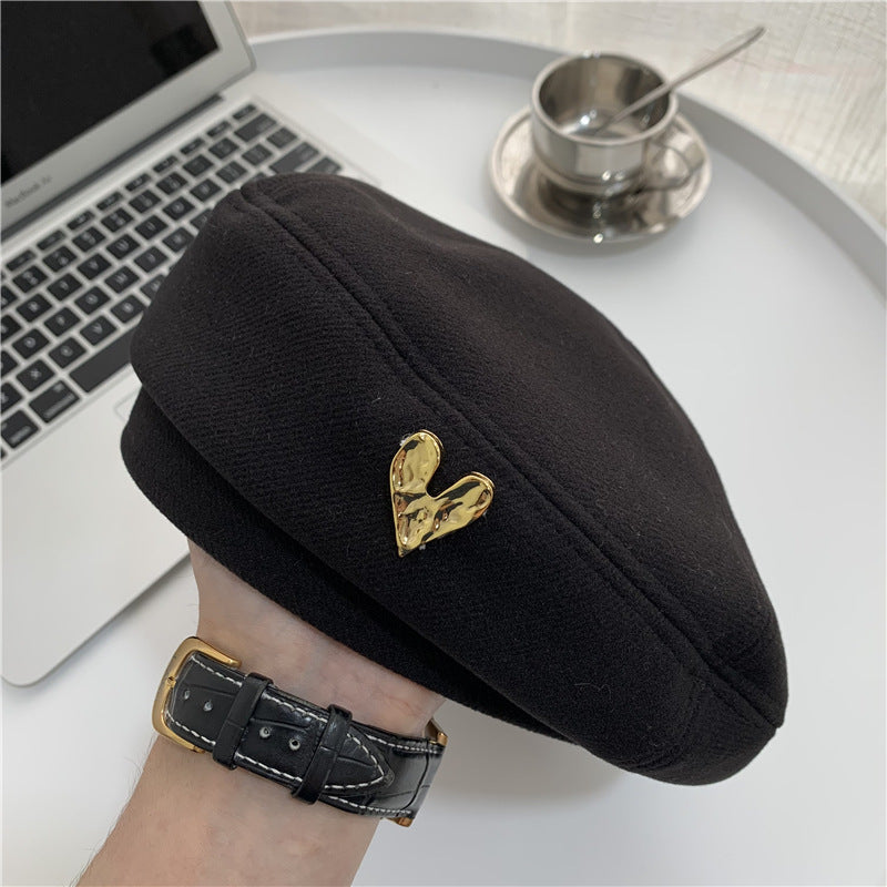 Woolen Heart Beret – Korean Retro Painter Hat