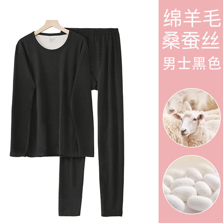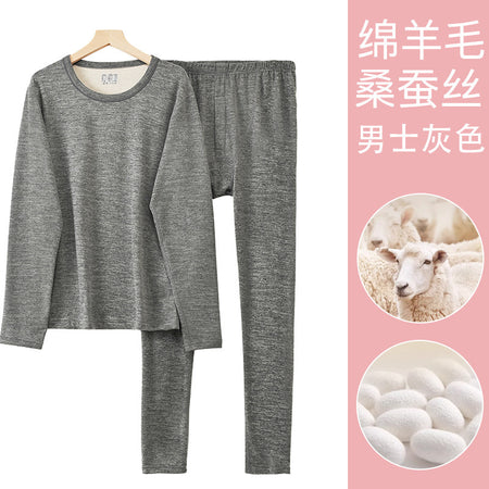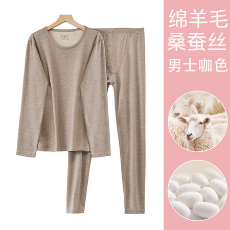 Wool Silk Thermal Underwear Set with Brushed Fleece