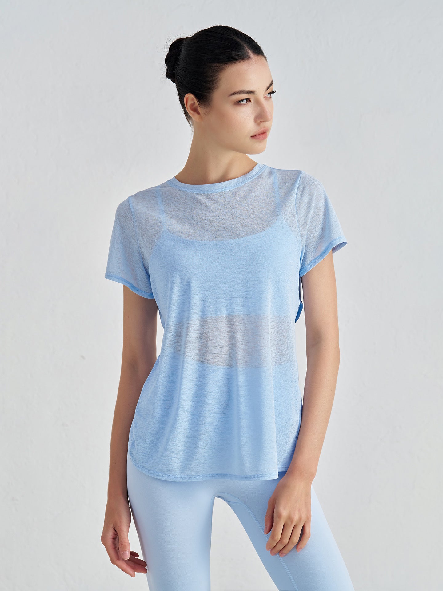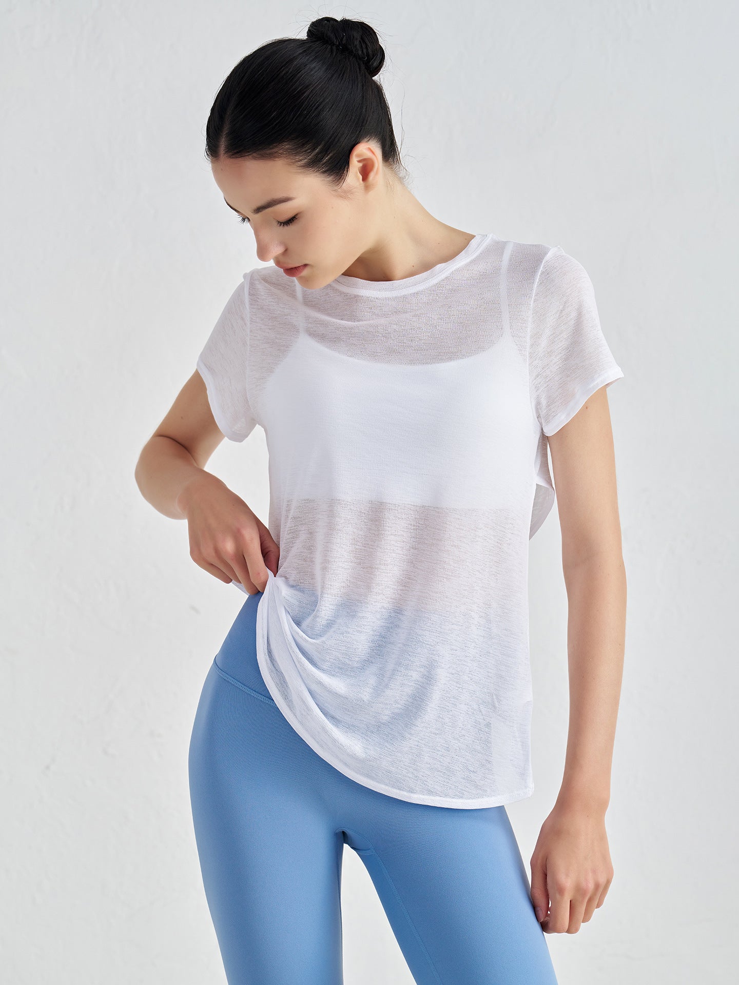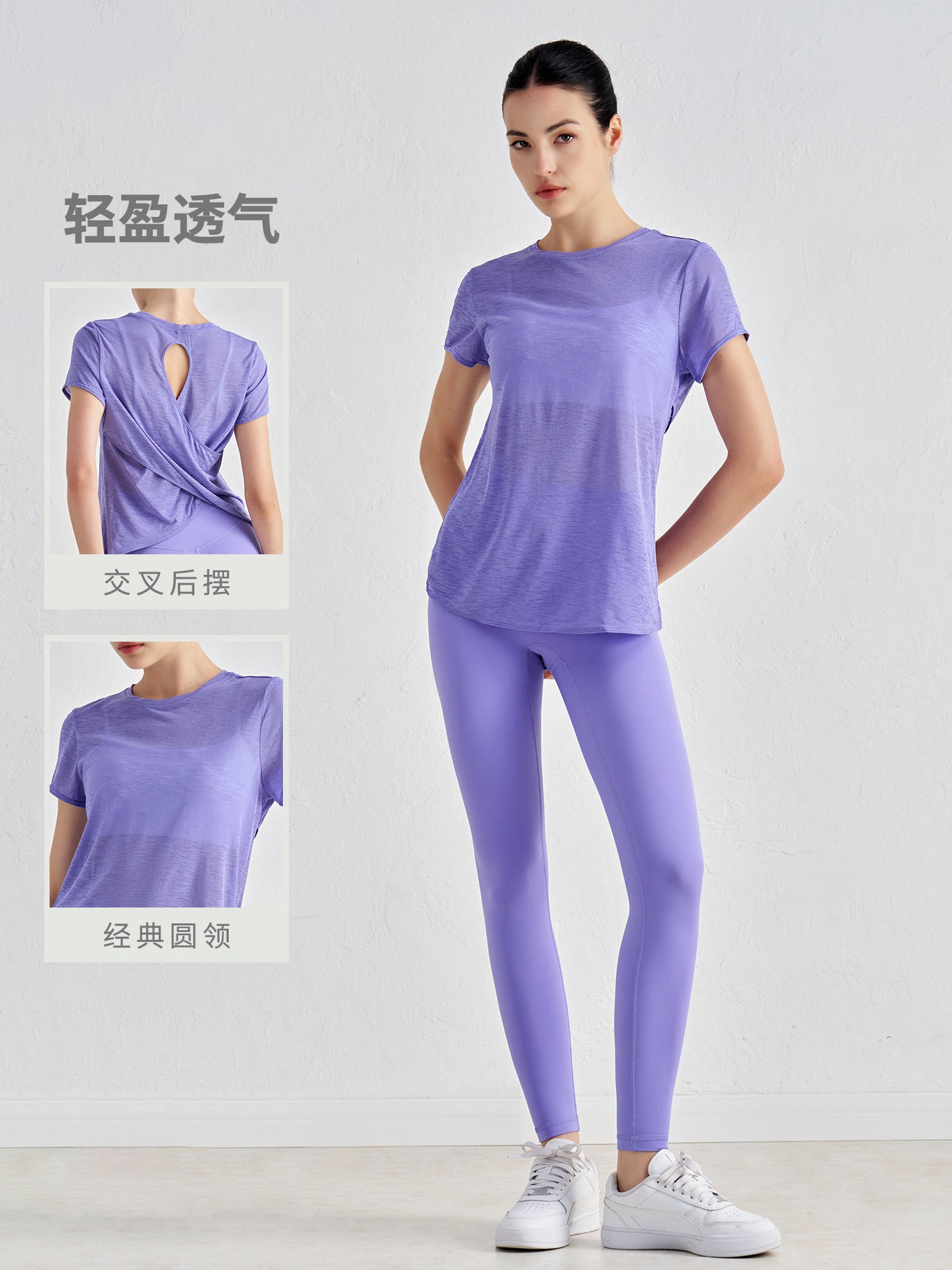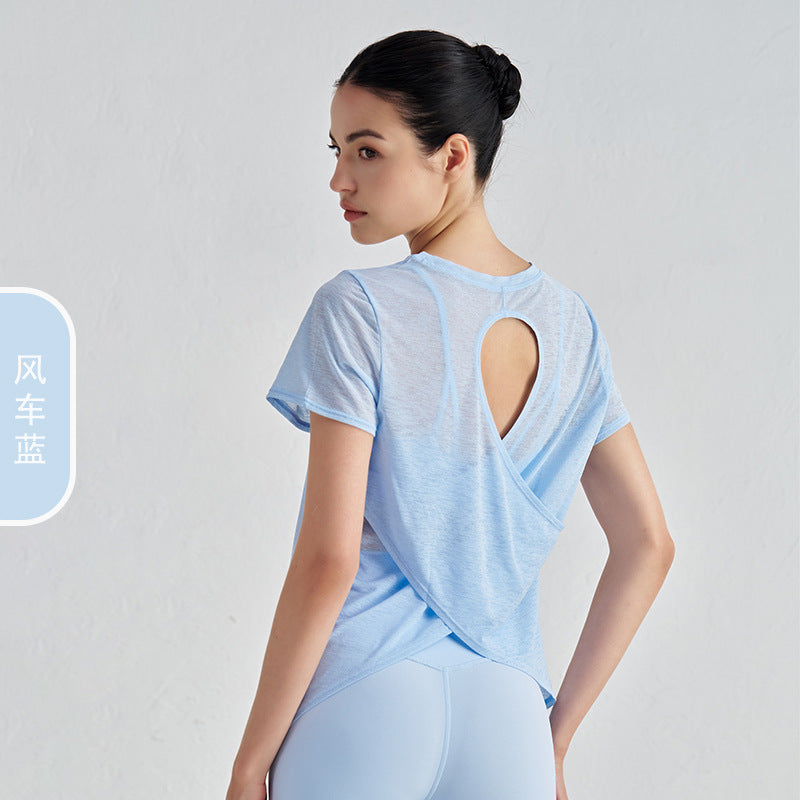 Crafted from premium bamboo yarn fabric, this T-shirt is soft, eco-friendly, and highly breathable, ensuring excellent moisture-wicking to keep you dry during intense exercise. The round neck design provides classic comfort, while the cut-out beautiful back adds a modern, fashionable touch. Its short-sleeved, slim-fit style allows freedom of movement, making it ideal for yoga, running, or summer fitness sessions. 🌟