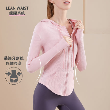 Crafted from lightweight, breathable fabric, this jacket keeps you comfortable during workouts while supporting full range of movement. The hood provides extra protection from wind or light rain, while the slim-fit cut enhances your figure, making it perfect for both gym sessions and casual outdoor wear. 🌸