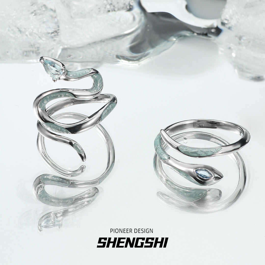 This ring blends niche style with cool sophistication. Its ice-blue detailing and snake motif make it an eye-catching addition to casual, office, or evening outfits, while the open design ensures comfort and versatility.