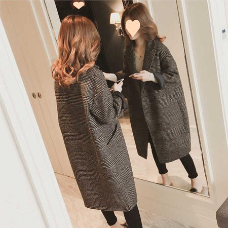 Stay warm, stylish, and effortlessly trendy with this Korean-style houndstooth woolen coat – a must-have autumn and winter essential! 💖