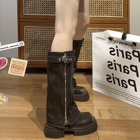 The platform sole and retro chunky heel work together to add visible height without putting pressure on your feet, making them ideal for walking on city roads, markets, campuses, and uneven pavements across Nepal 🏙️🏔️. The slim-fit long tube design visually elongates the legs, which is especially flattering for petite frames. Whether paired with skinny jeans, leggings, skirts, kurtis, or autumn dresses, these boots are truly all-match 👗🧥.
