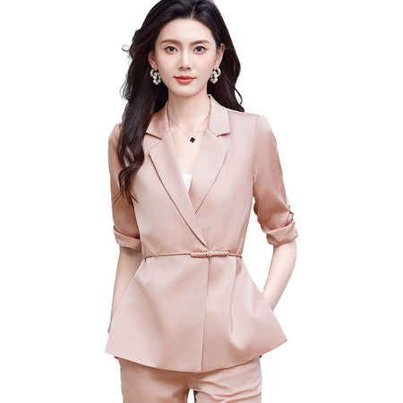 🌸 Embrace elegance with our Pink New Chinese-Style Women’s Suit Jacket, crafted from luxurious acetic acid satin for a smooth and high-end finish. Perfect for spring and summer in Nepal, this half-sleeve jacket blends traditional Chinese-inspired fashion with modern sophistication, making it a standout piece for formal wear, cultural events, or stylish outings. ✨