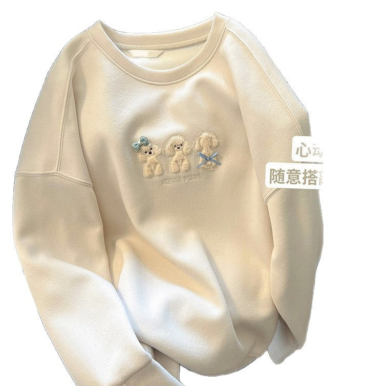 Add charm and warmth to your wardrobe with this Puppy Embroidered Plus Velvet Sweatshirt — exclusively at Tudoholic.com! 💎