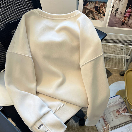 Made from plus velvet thickened fabric, this top keeps you snug during chilly days while feeling soft and luxurious on your skin. The round-neck and loose fit provide effortless comfort, making it easy to layer over tees or under jackets. 🌸✨