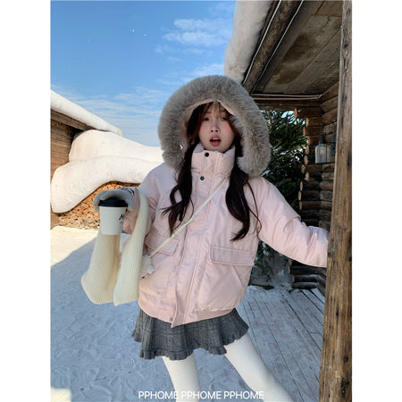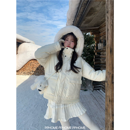 Crafted with premium cotton padding, this jacket keeps you warm without feeling heavy. The large fur collar and hooded design add extra protection from cold winds while elevating your style with a touch of luxury. 🌟💖