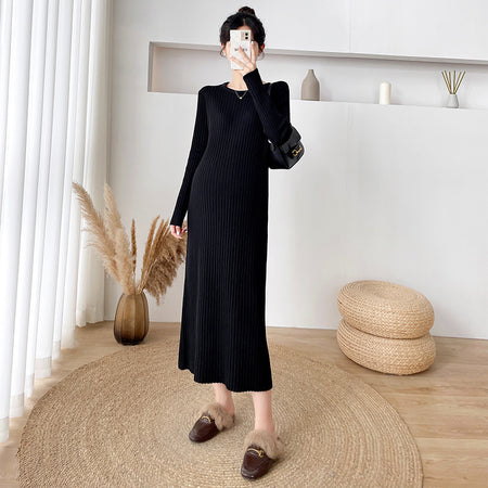 Maternity Knitted Sweater Dress with Warm Overcoat