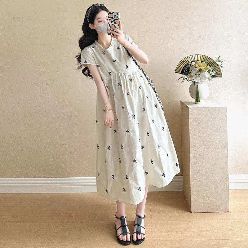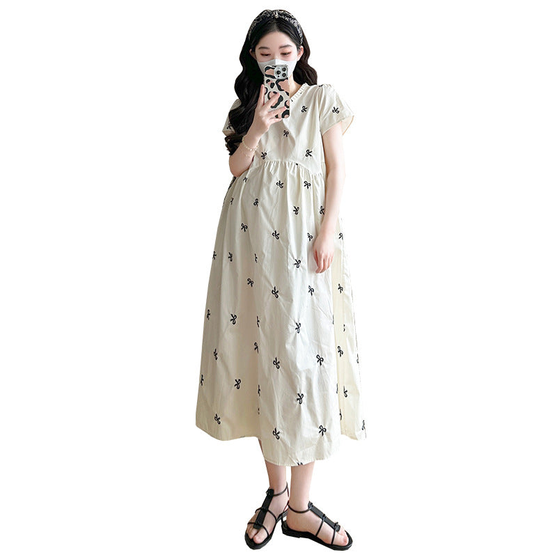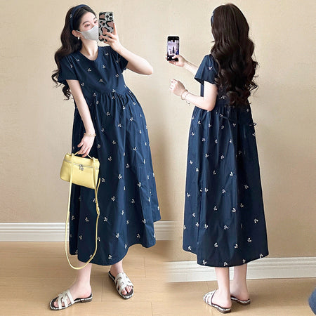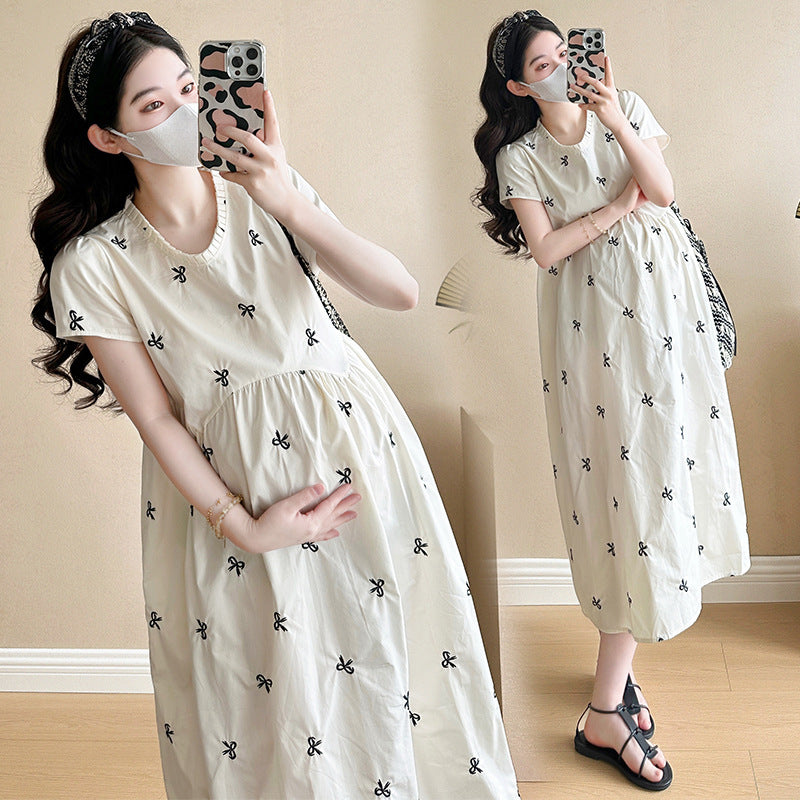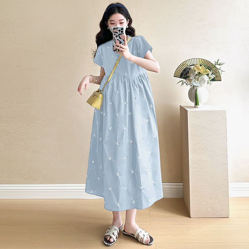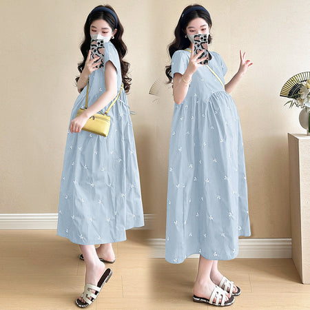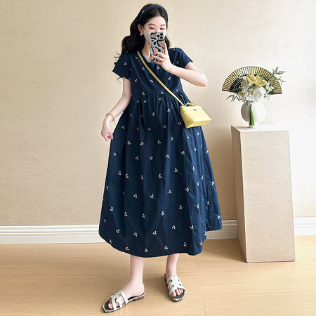 Crafted with soft, breathable cotton, it keeps you cool while the loose, plus-size fit accommodates your growing belly without compromising style. The French-inspired design adds a high-fashion sense, making it ideal for casual outings, family gatherings, or weekend strolls. Its versatile style ensures that you look chic and feel comfortable, whether at home or outdoors.