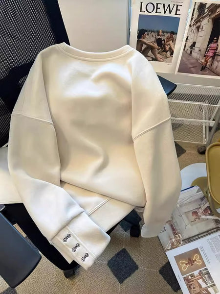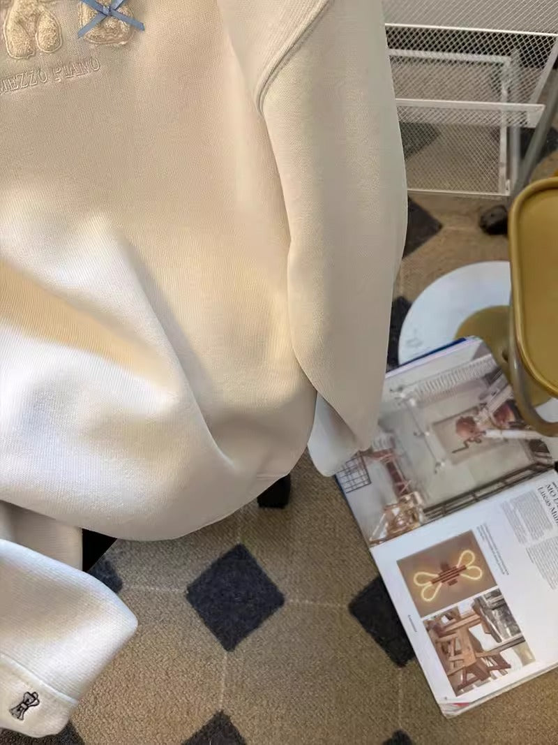 Whether layered under jackets or worn solo, this sweatshirt is a statement piece that combines high-end style, seasonal warmth, and playful embroidery — a must-have for autumn wardrobes.
