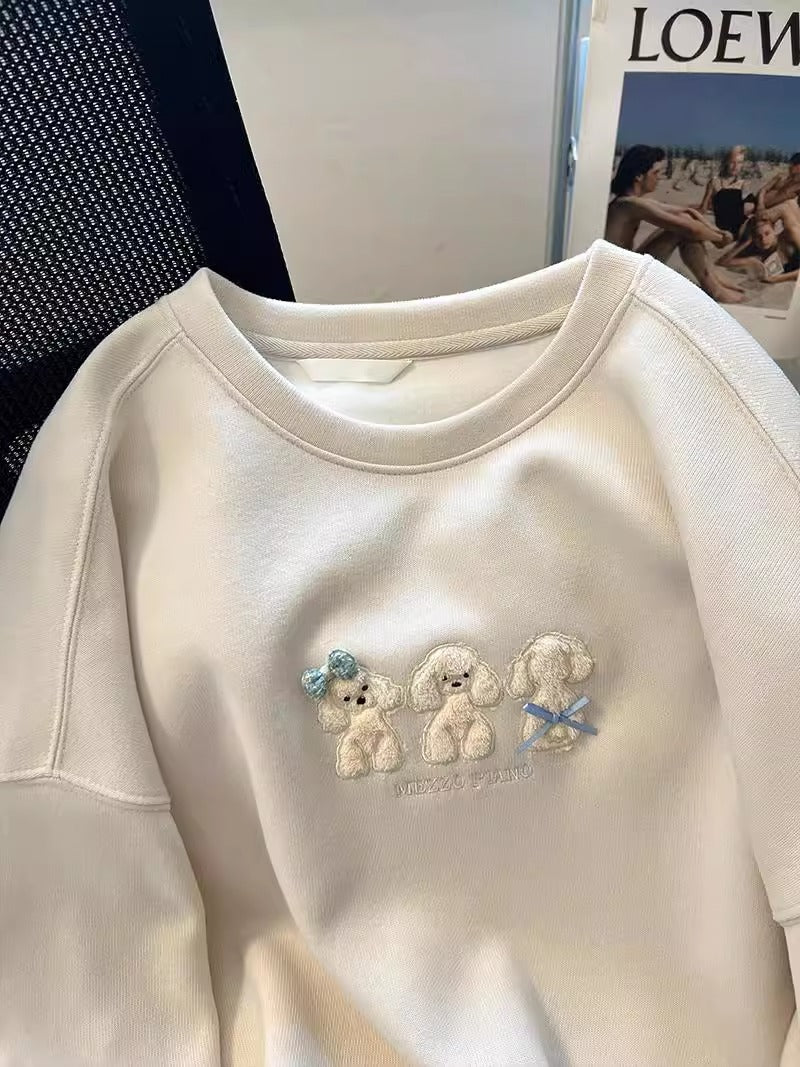 Add charm, warmth, and style to your autumn wardrobe with this Puppy Embroidered Crewneck Sweatshirt — exclusively at Tudoholic.com! 💎