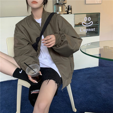 Step up your casual wardrobe with our QC Baseball Uniform Style Bomber Jacket for Women 🧥🍂. Designed with a retro-inspired loose fit, this versatile jacket combines comfort, style, and functionality, perfect for spring and fall outings.