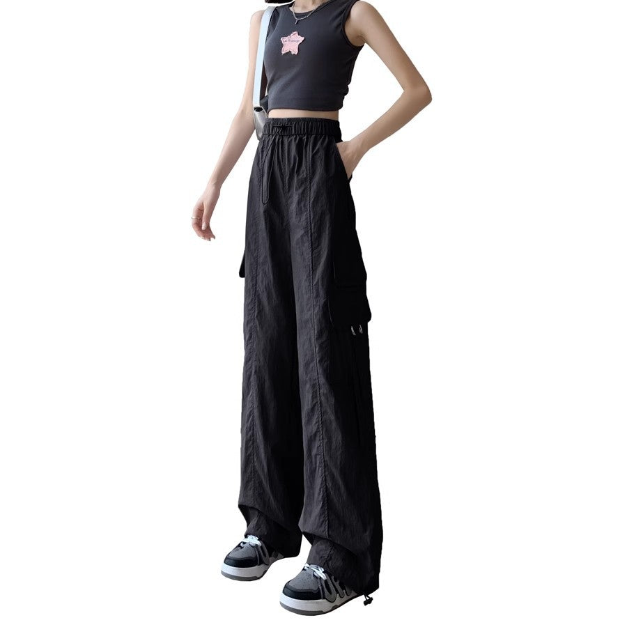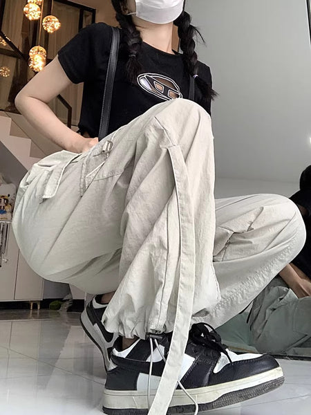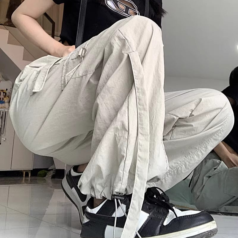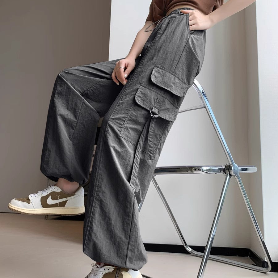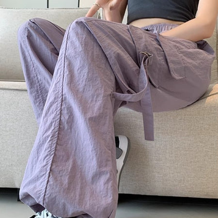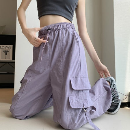 Crafted from lightweight, quick-dry fabric, they provide excellent breathability for everyday wear or casual outdoor activities. The wide-leg design ensures freedom of movement, and the leg-tie detail adds a playful, fashionable touch. These pants pair effortlessly with blouses, t-shirts, or crop tops, making them versatile for casual outings, streetwear, or work-from-home comfort.