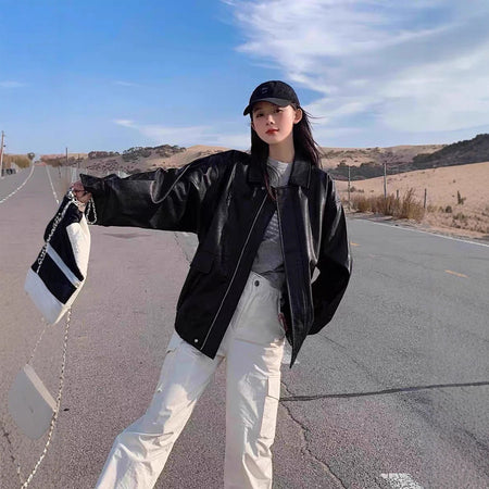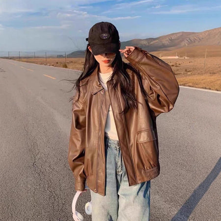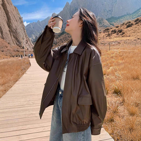Rev up your autumn and winter style with our 2025 Retro Brown Leather Jacket for Women π§₯π. Designed in a small, Korean-inspired loose fit, this short leather jacket blends retro charm, edgy motorcycle style, and modern fashion, making it a must-have for trendy women.