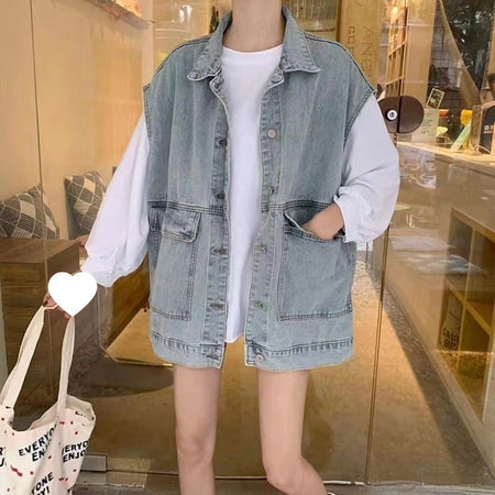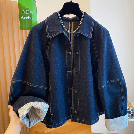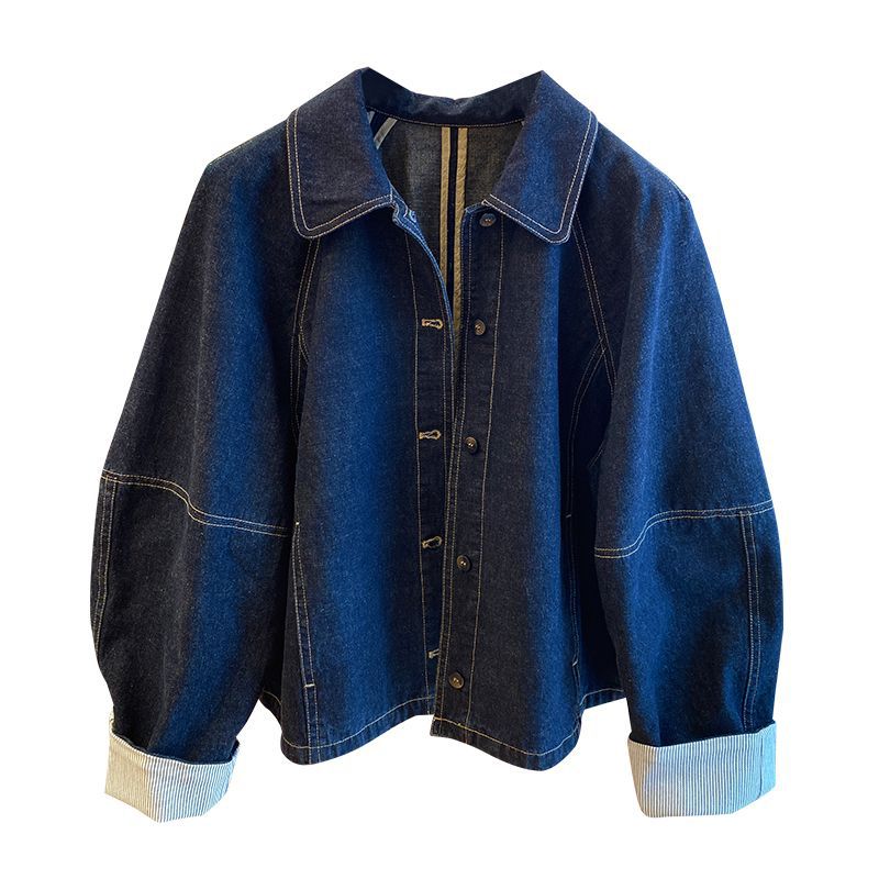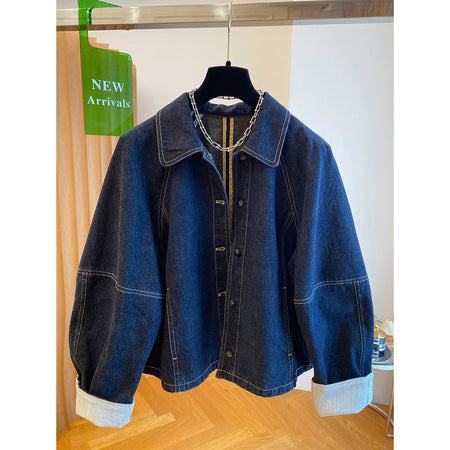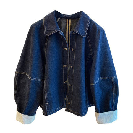 Crafted from durable, soft denim, the jacket features a loose, relaxed fit, making it ideal for layering over tees, blouses, or lightweight sweaters. The fashionable cuffs and stitching details add a touch of sophistication, while the retro dark blue color ensures it pairs effortlessly with any outfit. πΈπ
