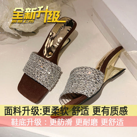 Featuring sparkling rhinestone detailing, these flip-flop-style sandals catch the light beautifully, adding a touch of sophistication to any outfit. The high-heel design provides a graceful posture while elongating your legs, and the open-toe style keeps your feet cool and stylish. 🌸✨