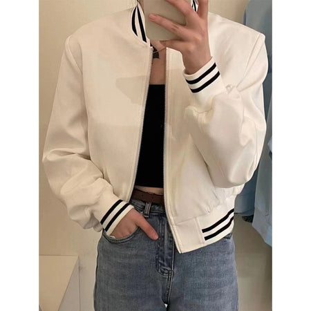 Short Baseball Suit Jacket for Women 🧥🍂. Designed with a Korean-inspired loose fit, this versatile jacket combines casual comfort, sporty vibes, and fashion-forward design, perfect for everyday wear.