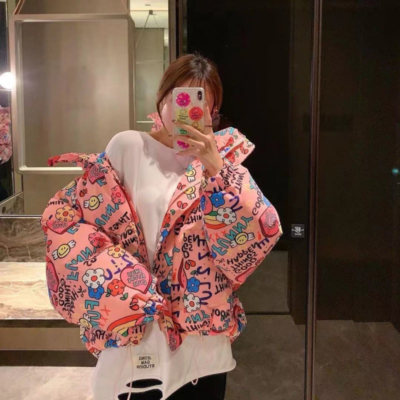 Women’s Short Down Jacket 🧥❄️. Designed in a Korean loose-fit style, this jacket combines cozy warmth with a slimming silhouette, making it perfect for students and young fashion enthusiasts.