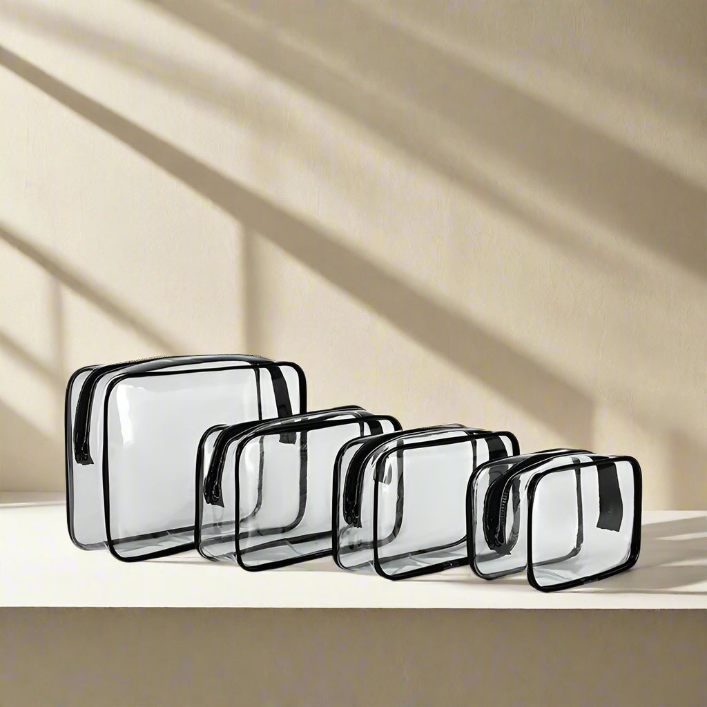 Travel light and stylishly with the Transparent PVC Cosmetic Bag 💎. This waterproof bag makes it easy to find your beauty essentials while keeping them secure and organized.
