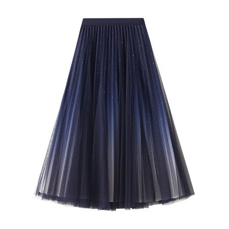 Starry Sky Gradient Mesh Pleated Long Skirt