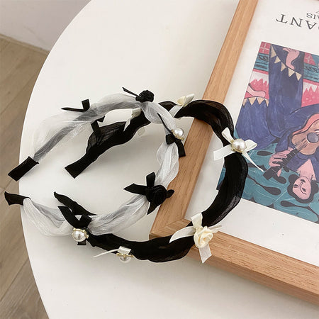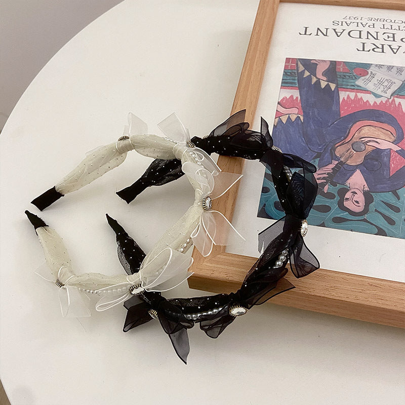 (Pack of 2) Fairy Mesh Bow Hairband – Pearl French Style Headband for Women
