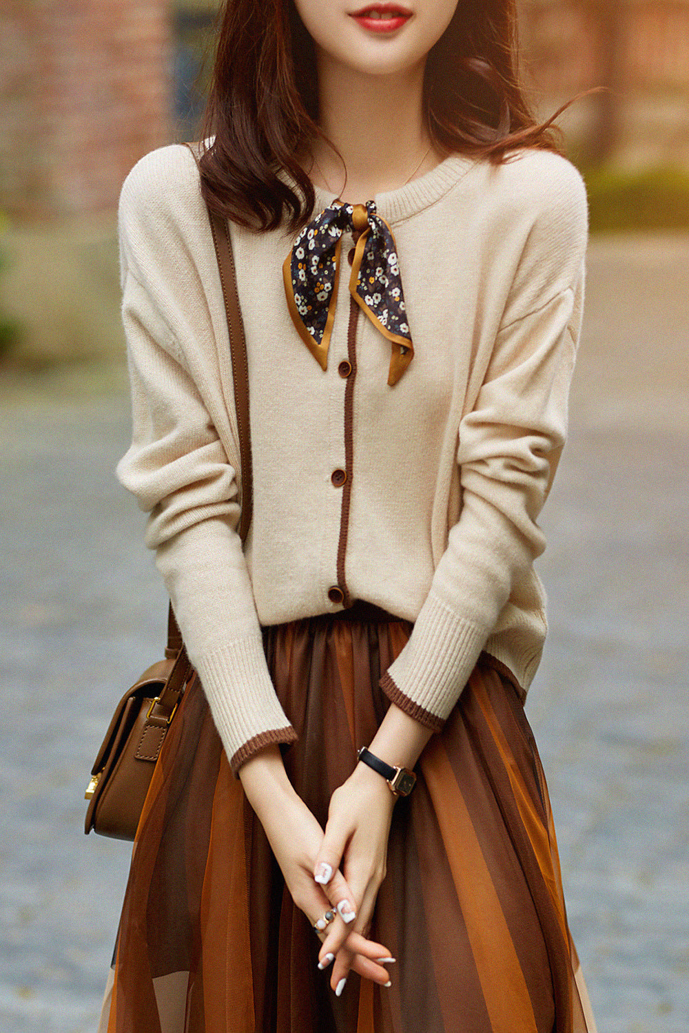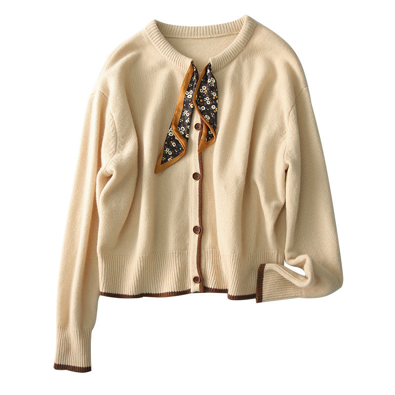 Women’s Spring-Autumn Knitted Cardigan & Silk Scarf