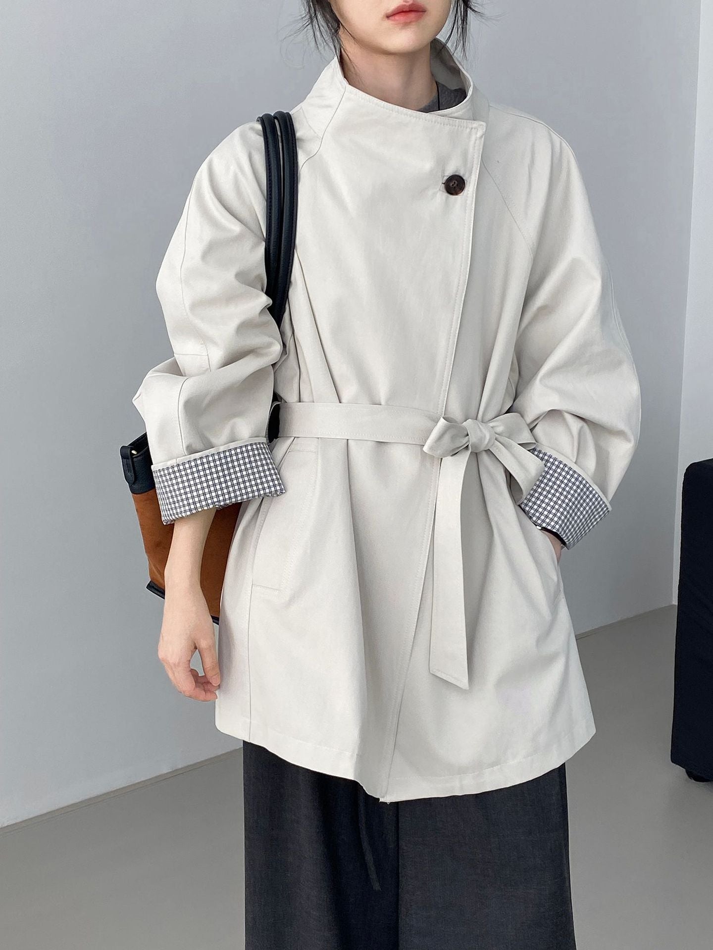 Add a touch of retro British elegance with this Stand-Up Collar Windbreaker! 🎩🍁 Slimming mid-length cut and loose fit create a chic look perfect for autumn and winter days in Nepal.