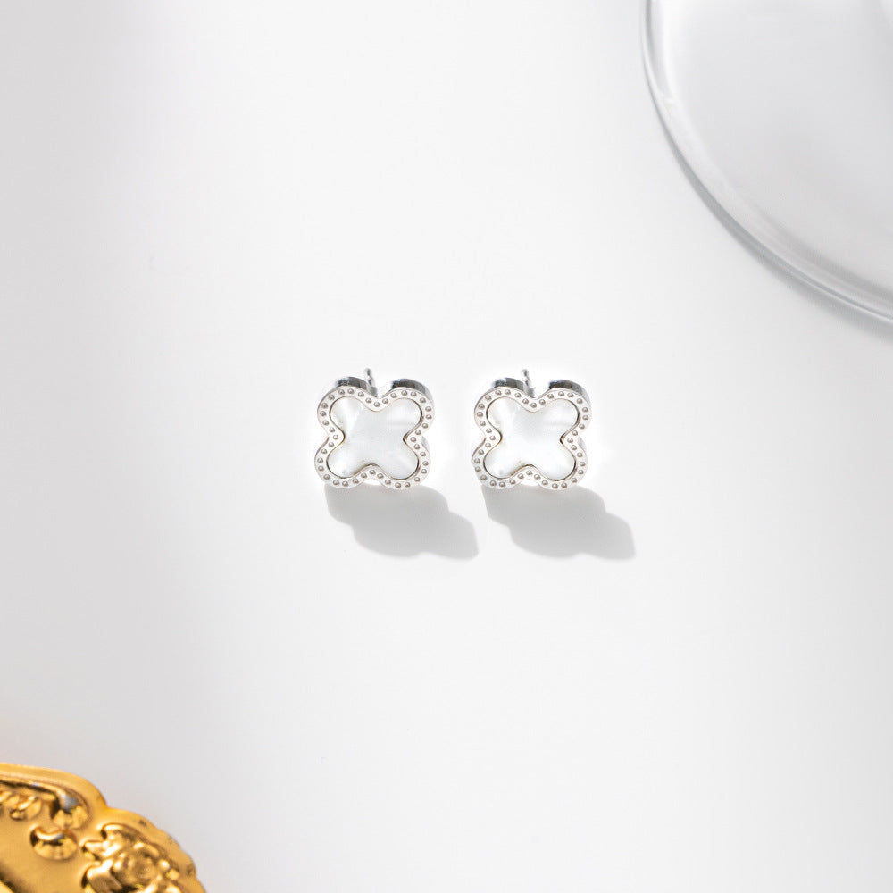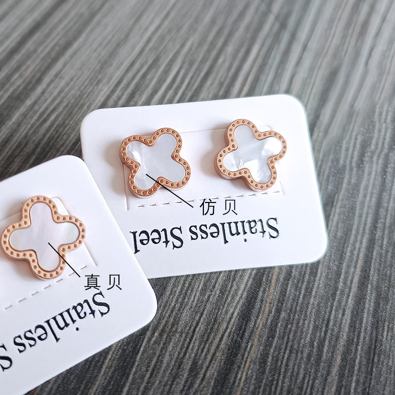 Four-Leaf Clover Shell Pendant Necklace Titanium Steel