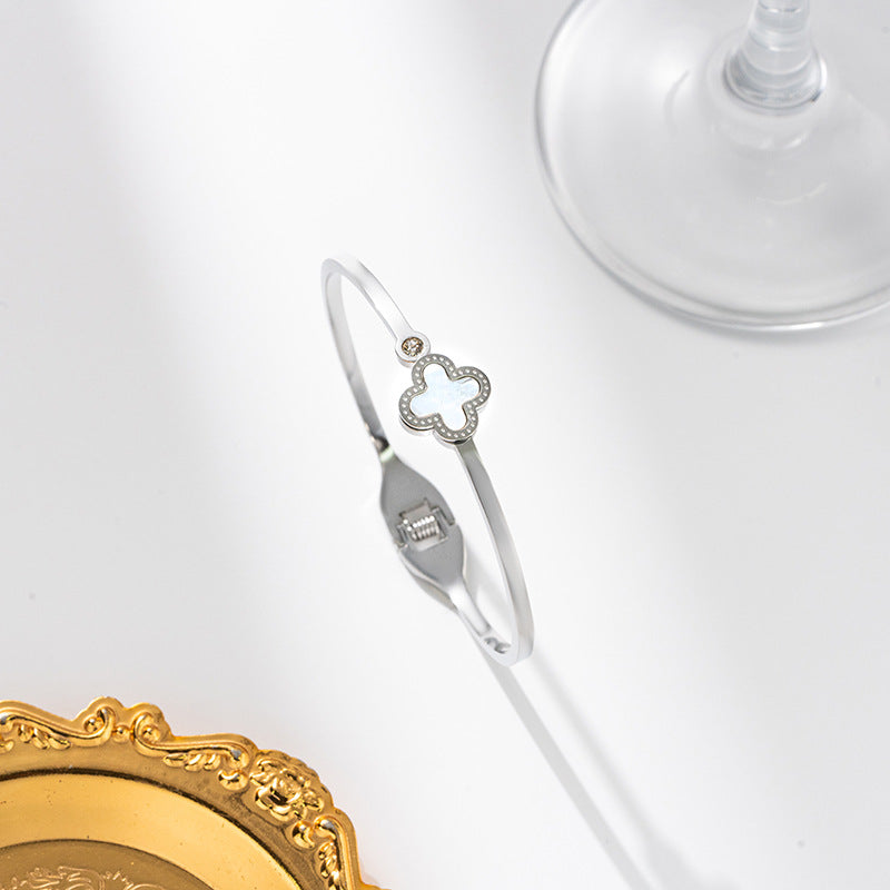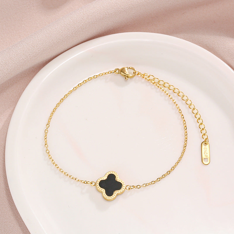 This necklace is a blend of simplicity and sophistication. The four-leaf clover charm adds a touch of positivity and elegance, while the non-fading titanium steel ensures lasting shine.