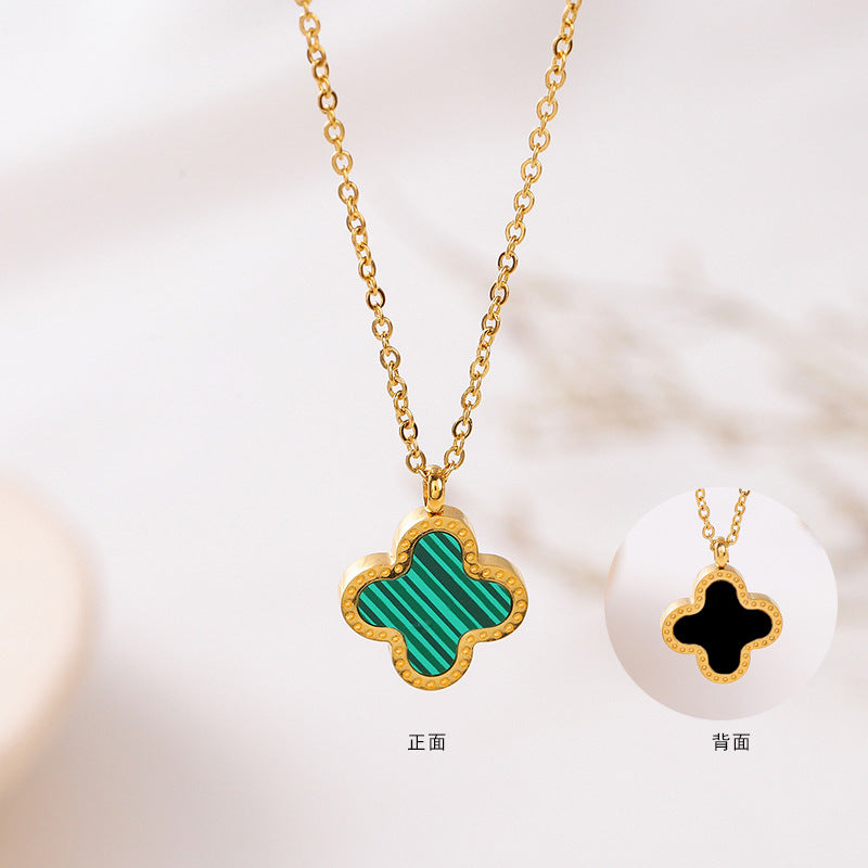 Embrace timeless charm with the Four-Leaf Clover Pendant Necklace, a classic piece crafted from durable titanium steel and inlaid with elegant shell. This double-sided design symbolizes luck, love, and happiness—making it a meaningful accessory for everyday wear.