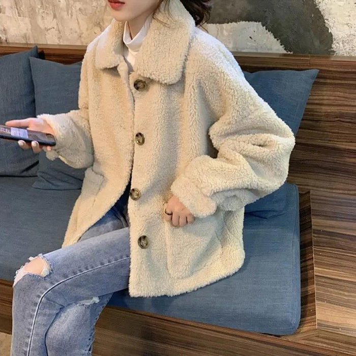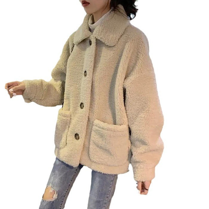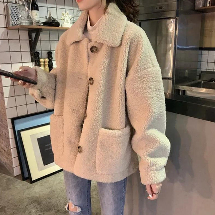 Tweed Style Imitation Lamb Wool Loose Casual Outwear
