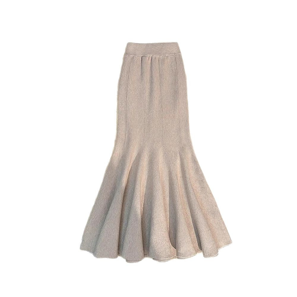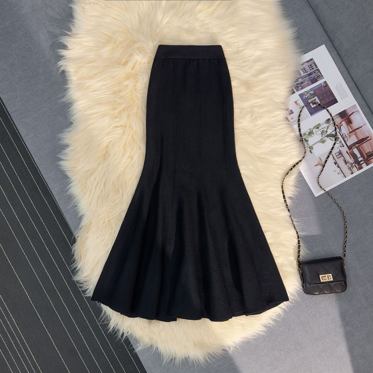 Pair it with a fitted sweater or blouse for an elegant look. The knitted fabric hugs your curves while the fishtail hem adds movement, making it suitable for both office and social occasions.