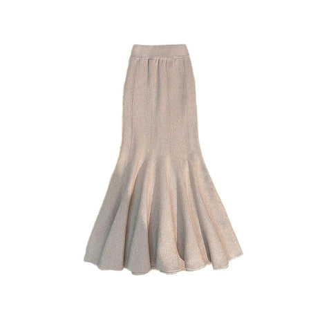 Elegant and flattering, this White Knitted Fishtail Skirt is designed to enhance your silhouette while keeping you cozy during autumn and winter. The fishtail cut and lotus hem create a feminine shape that’s both stylish and comfortable.
