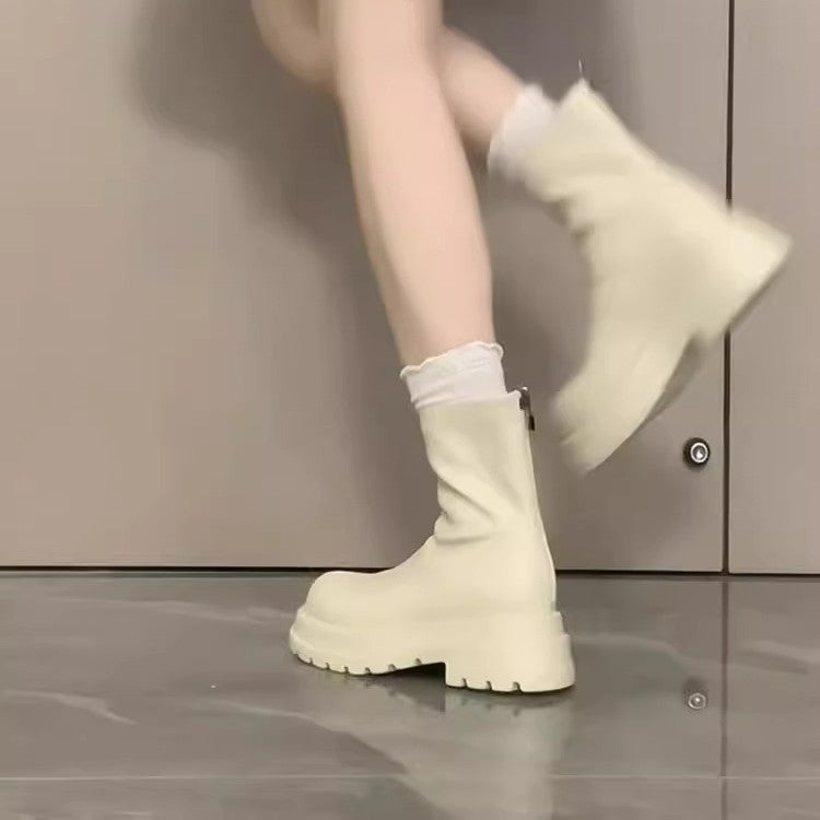 Add effortless elegance and everyday comfort to your seasonal wardrobe with French-Style White Thick-Soled Height-Increasing Ankle Boots for Women 👢✨. Designed for autumn and winter, these boots blend round-toe comfort, chunky heel stability, and classic Martin boot structure with a modern western touch—perfect for Nepali women who want style that works all day.