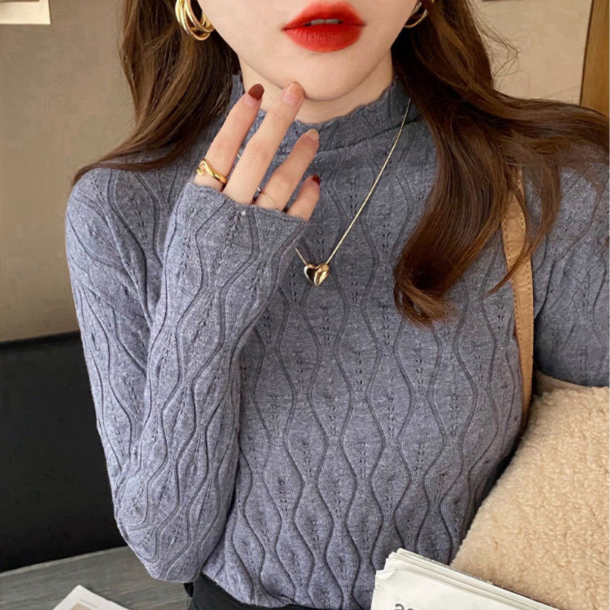 Crafted from soft, high-quality knit fabric, it keeps you cozy while offering a relaxed fit that moves effortlessly with your body. The half-high collar adds sophistication and warmth, making it perfect for layering under jackets, coats, or wearing alone as a statement piece. Its versatile style pairs beautifully with skirts, pants, or casual wear, ensuring effortless everyday elegance.