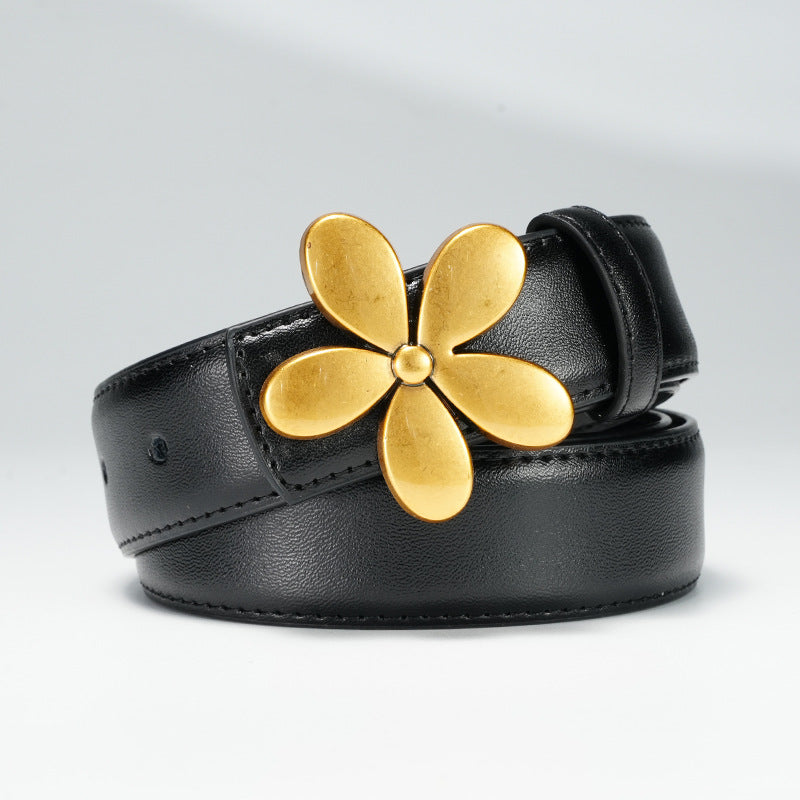 💖 Elevate your wardrobe with the Women’s Black Flower Cowhide Decorative Belt—where fashion meets functionality effortlessly!