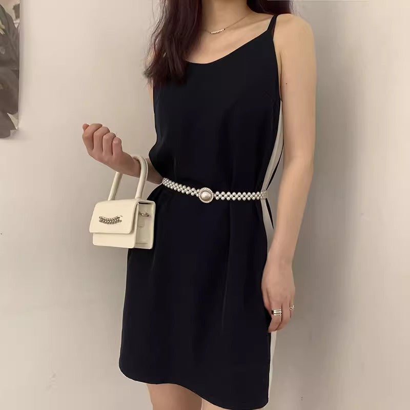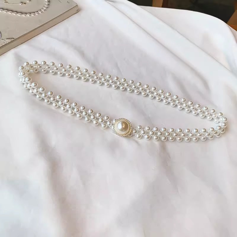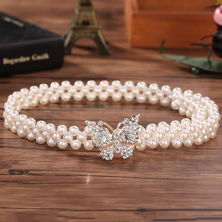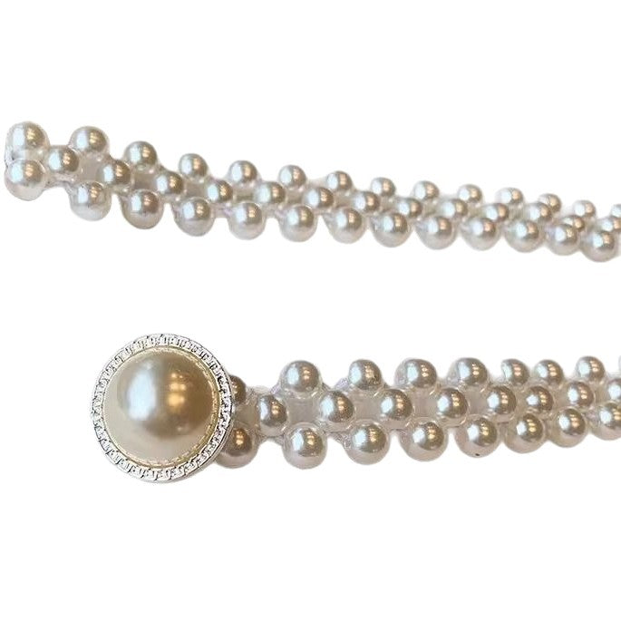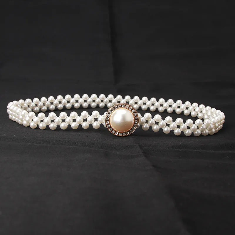 Women’s Korean Rhinestone Pearl Waist Chain Belt
