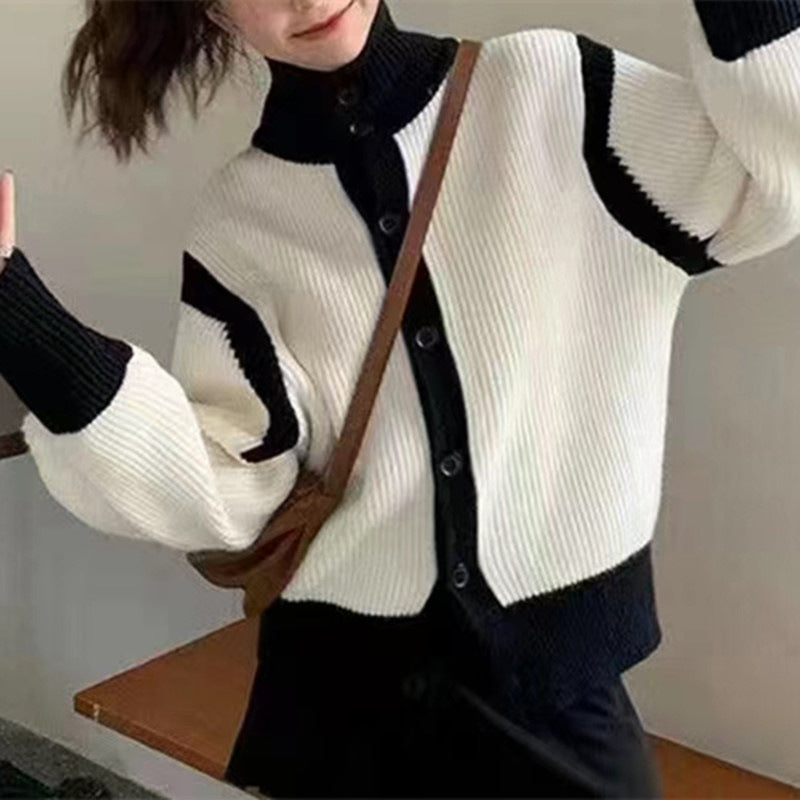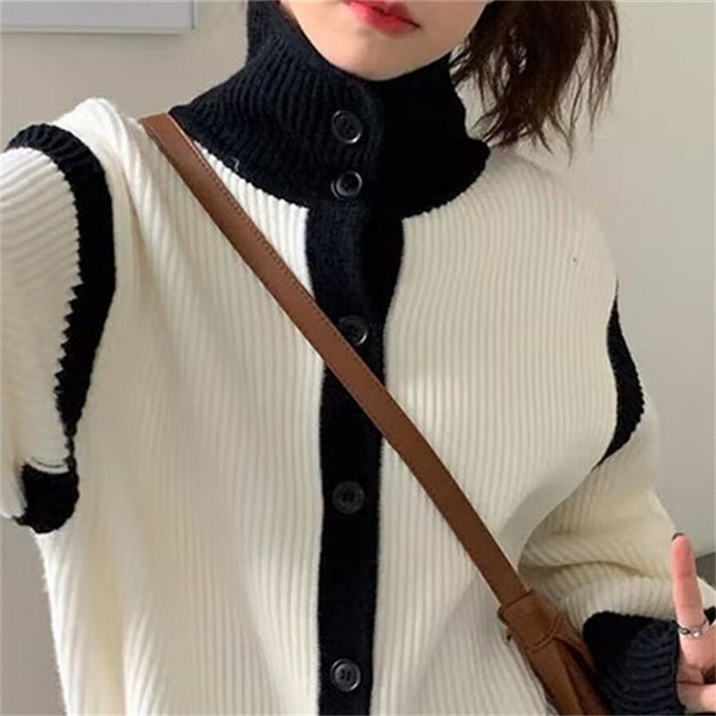 Made from soft, high-quality knit fabric, this sweater feels gentle on your skin while keeping you warm on chilly days ❄️. The turtleneck design adds extra warmth and style, while the contrast color detailing gives it a modern, eye-catching flair 🌸. Its loose, relaxed fit ensures comfort and effortless layering, making it perfect as outerwear over tops or casual outfits 🌿.