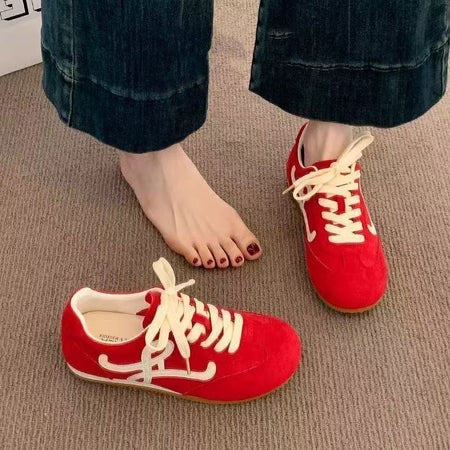 Crafted from premium leather, these shoes provide durability while offering a soft, comfortable fit. The flat sole design ensures all-day wearability without sacrificing style, while the retro casual aesthetic adds a fashionable twist to your everyday outfits. πΈβ¨