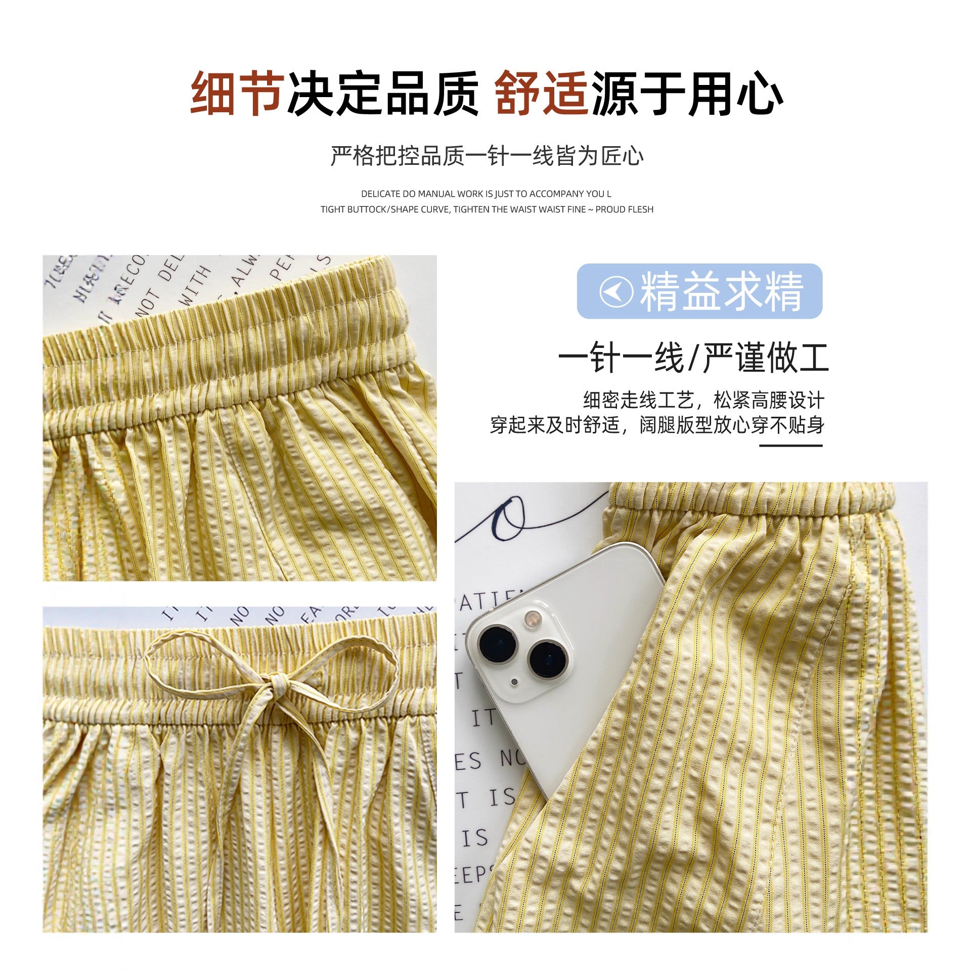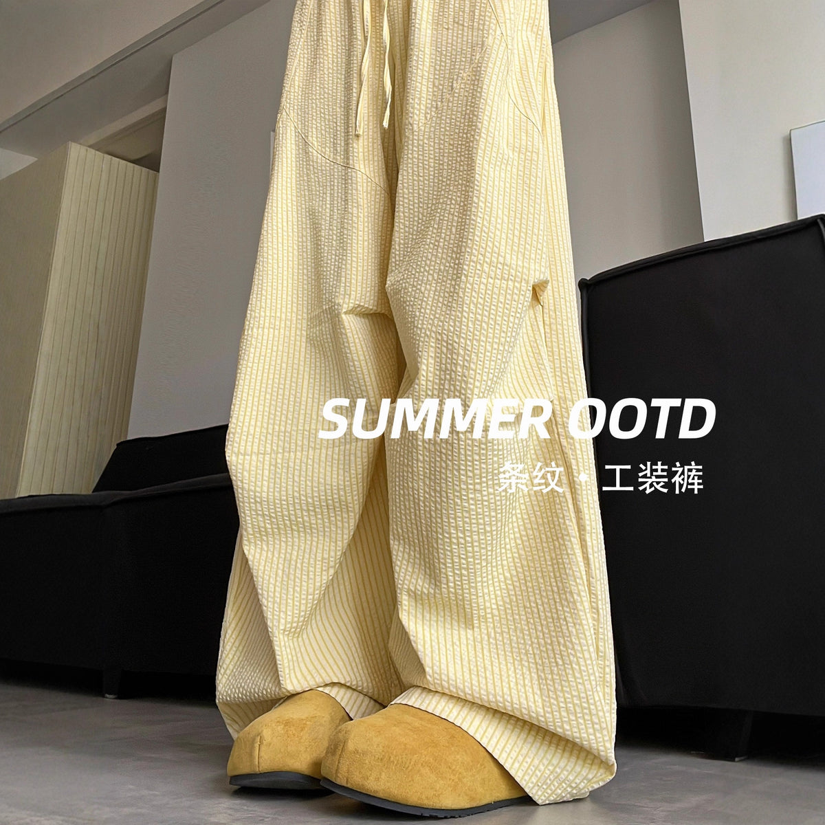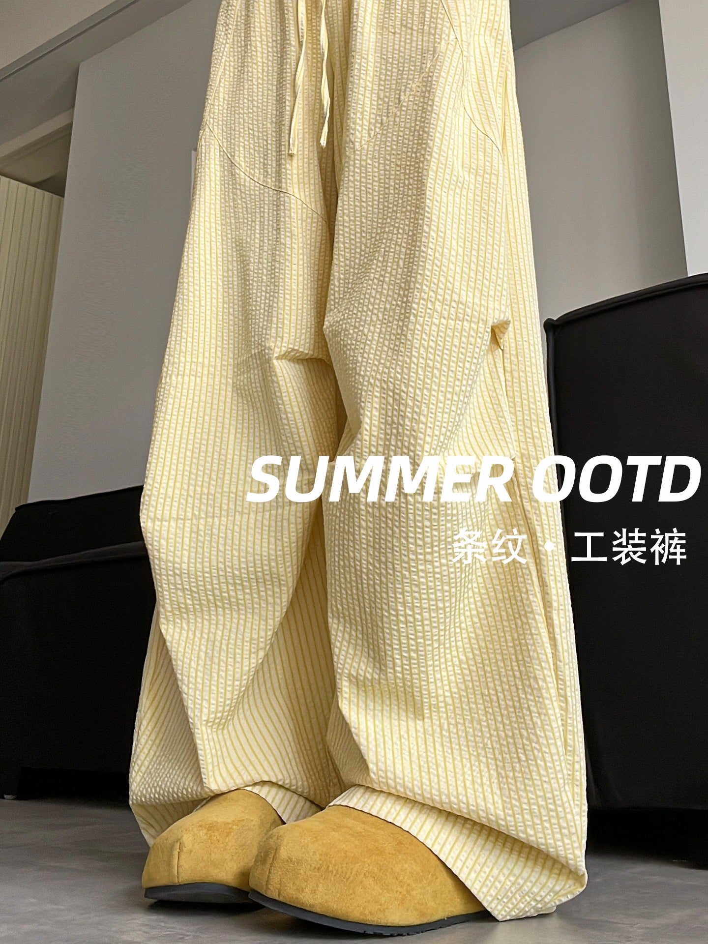 Crafted from soft, lightweight fabric, they drape effortlessly for a lazy, flowing fit that enhances your natural movement. The high-waist design elongates the legs, while the wide-leg cut adds a modern, stylish touch. The cheerful yellow stripe pattern brings energy and vibrancy to your outfit, effortlessly pairing with simple tops, blouses, or sweaters.