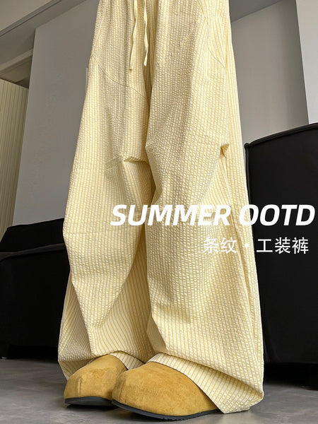 Yellow Striped High-Waist Wide-Leg Casual Pants